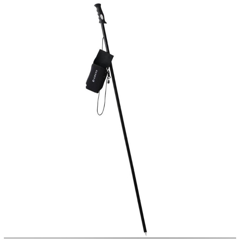 Bastón de vadeo plegable de alta calidad, fabricado en acero inoxidable. Equipado con una cómoda empuñadura, se suministra en una bolsa de neopreno (con un lazo para sujetarlo al cinturón). Un potente elástico une firmemente las piezas una vez extraído de la bolsa.
