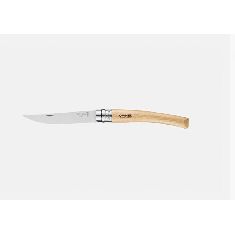 El estilizado 10 haya tiene una hoja esmerilada pulida de acero inoxidable y un mango de madera de haya robusto. Gracias a su tamaño, puede ser tanto una pequeña y elegante navaja de bolsillo como un cuchillo de mesa portátil que se puede llevar a cualquier parte. Fabricado en Francia, tiene una virola Virobloc con el nuevo logo estampado.