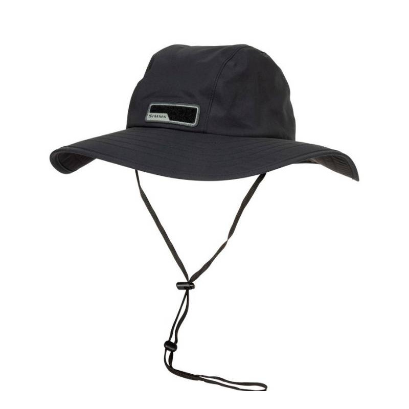 Tejido exterior GORE-TEX 70D totalmente impermeable El borde de espuma EVA totalmente triturable vuelve a formarse después del almacenamiento y transporte. Parche pequeño de lazo en el panel frontal para guardar las moscas Visera negra para reducir el deslumbramiento Cincha de cordón ajustable para una variedad de tamaños de cabeza