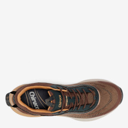 Un zapato de material sintético, detalles en alta frecuencia, refuerzo en puntera y trasera, membrana Gore-Tex impermeable y transpirable; suela dos densidades con entresuela de phylon y suela de goma que proporciona amortiguación y comodidad.